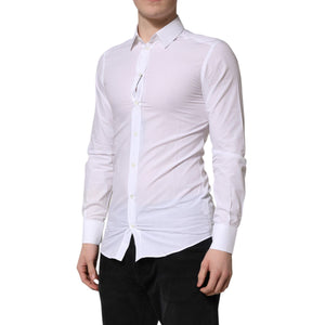 Dolce & Gabbana White Cotton GOLD Long Sleeve Men Dress Shirt