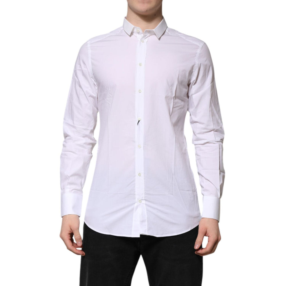 Dolce & Gabbana White Cotton GOLD Long Sleeves Formal Shirt