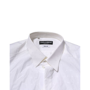 Dolce & Gabbana White Cotton GOLD Long Sleeves Formal Shirt