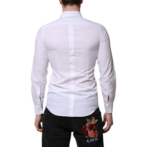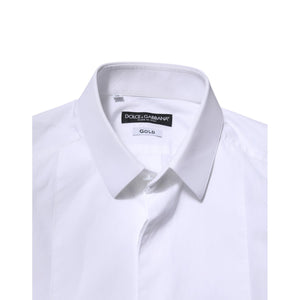 Dolce & Gabbana White Cotton GOLD Long Sleeves Men Dress Shirt