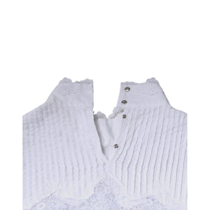 Dolce & Gabbana White Cotton Lace Trim Turtleneck Blouse Top