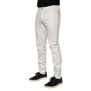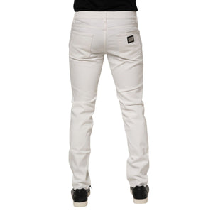 Dolce & Gabbana White Cotton Logo Plaque Slim Fit Denim Jeans