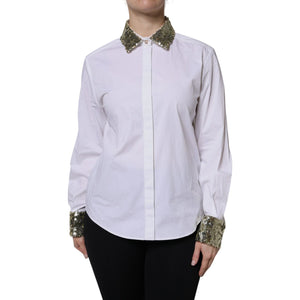 Dolce & Gabbana White Cotton Long Sleeves Sequin Shirt Top