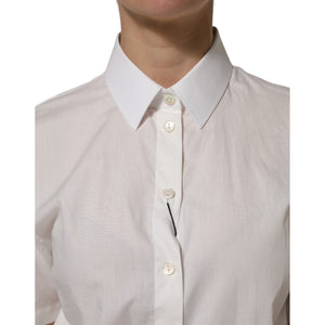 Dolce & Gabbana White Cotton Short Sleeves Collared Top Shirt