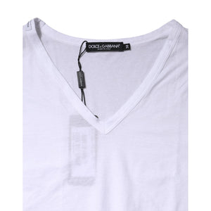 Dolce & Gabbana White Cotton Short Sleeves V-Neck Top T-shirt