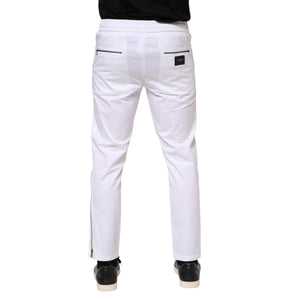 Dolce & Gabbana White Cotton Stretch Logo Men Jogger Pants