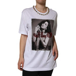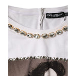 Dolce & Gabbana White Crystal Neckline Embellished Printed T-shirt