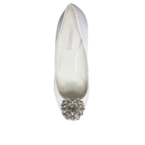 • Dolce & Gabbana White Crystals Peep Toe Satin Pumps Shoes