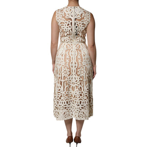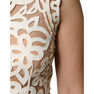 Dolce & Gabbana White Cut Out Leather Sleeveless Midi Dress