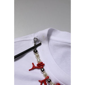 Dolce & Gabbana White Embellished Cotton Crew Neck T-shirt
