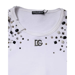 Dolce & Gabbana White Embellished Long Sleeve Cropped Sweater