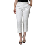Dolce & Gabbana White Floral Brocade Cotton Cropped Pants
