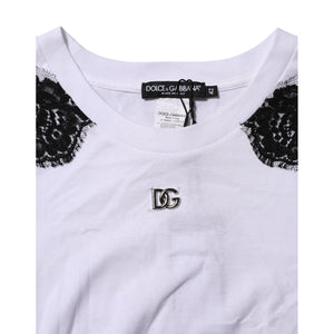 Dolce & Gabbana White Floral Lace DG Detailing Top T-shirt