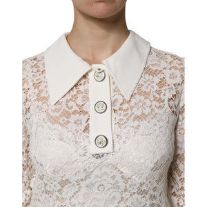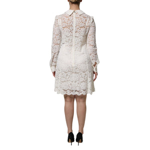 Dolce & Gabbana White Floral Lace Long Sleeves A-line Dress