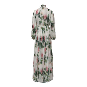 Dolce & Gabbana White Floral Roses Silk Maxi Long Gown Dress