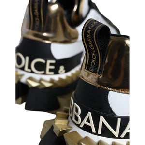 Dolce & Gabbana White Gold Black Leather SUPER KING Sneakers Shoes