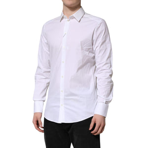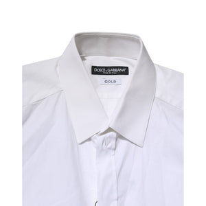 Dolce & Gabbana White GOLD Cotton Collared Dress Shirt Top