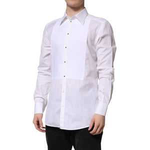 Dolce & Gabbana White GOLD Cotton Long Sleeves Formal Shirt