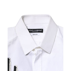 Dolce & Gabbana White GOLD Embroidery Detailed Dress Shirt
