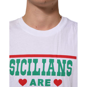 Dolce & Gabbana White Graphic Print Cotton Crew Neck T-shirt
