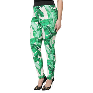 Dolce & Gabbana White Green Leaf High Waist Pants