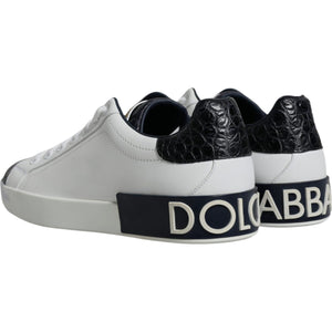 Dolce & Gabbana White Leather Logo Portofino Sneaker Shoes