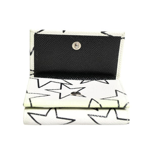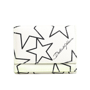 Dolce & Gabbana White Leather Trifold DG Star Print Card Holder Wallet