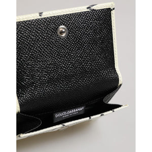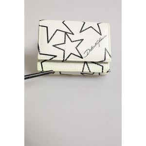 Dolce & Gabbana White Leather Trifold DG Star Print Card Holder Wallet