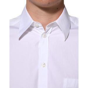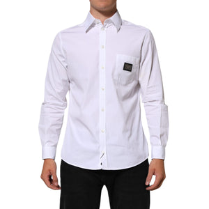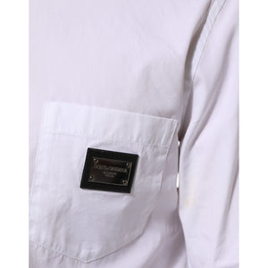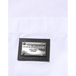 Dolce & Gabbana White Logo Plaque Collared Formal Dress Shirt