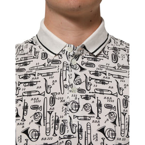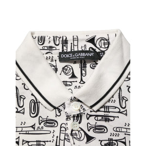 Dolce & Gabbana White Musical Print Collared Polo T-shirt