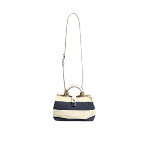Dolce & Gabbana White Navy Striped Canvas Top Handle Tote Bag