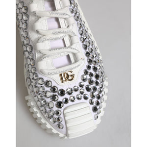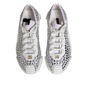 Dolce & Gabbana White NS1 Canvas Leather Embellished Sneakers Shoes