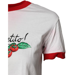Dolce & Gabbana White Printed Round Neck Cropped Top T-shirt