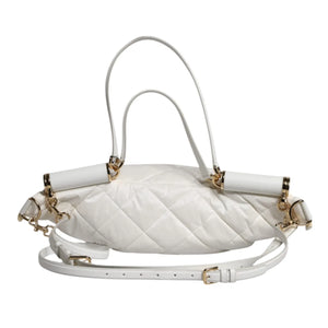 Gorgeous brand new, 100% Authentic Dolce & Gabbana white quilted finish gold-tone logo plaque two-way zip fastening detachable adjustable waist strap flat top handles main compartment internal patch pockets internal zip-fastening pocket.
