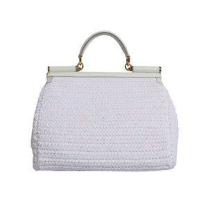 Dolce & Gabbana White Rafia Leather Top Handle Crossbody Bag