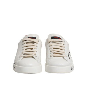 Dolce & Gabbana White Red Leather Logo Low Top Sneakers Shoes