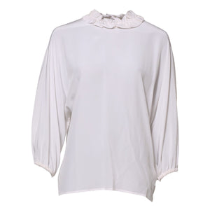 Dolce & Gabbana White Ruffled Neckline Blouse Pullover Top