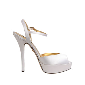 Dolce & Gabbana White Satin Platform Heels Sandals Shoes