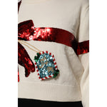 Dolce & Gabbana White Sequined Crew Neck Pullover Sweater
