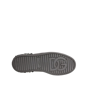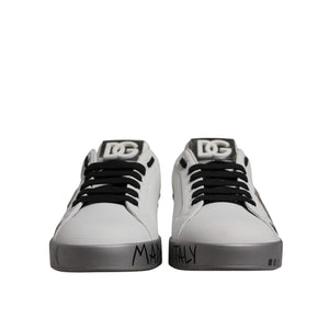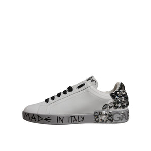 Dolce & Gabbana White Silver Crystal Logo Portofino Sneakers Shoes