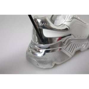 Dolce & Gabbana White Silver Daymaster Leather Sneakers Shoes