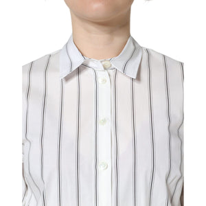 Dolce & Gabbana White Striped Collared Short Sleeve Polo Top