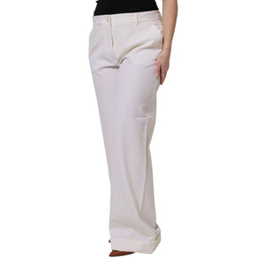 Dolce & Gabbana White Wool Mid Waist Wide Leg Pants