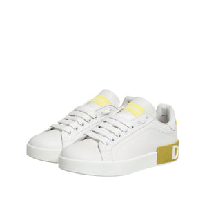 Dolce & Gabbana White Yellow Leather Low Top Sneakers Shoes