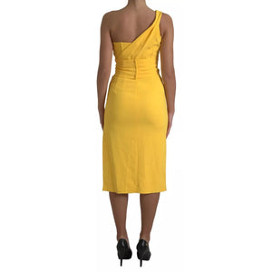 Dolce & Gabbana Yellow One Shoulder Side Slit Sheath Dress