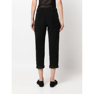 Koons button-fly cropped trousers from DONDUP featuring black, cotton blend, logo patch to the rear, mid-rise, belt loops, button fly fastening, straight leg, classic five pockets, turn-up cuffs and mid-calf length. Koons loose fit jeans Size and Fit - This piece fits true to size. We recommend you get your regular size. Model is 1,75m / 5ft 8in wearing size 27 (WAIST CM)