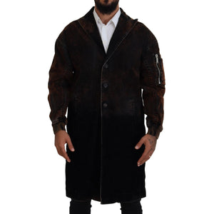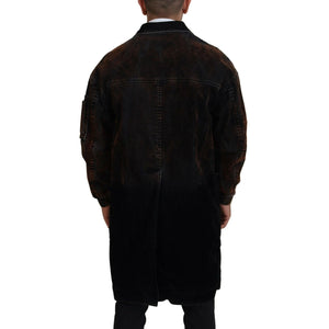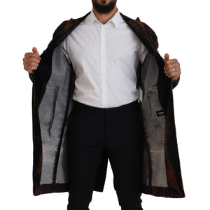 معطف رجالي طويل من القطن بأزرار كاملة باللون البني من Dsquared²
