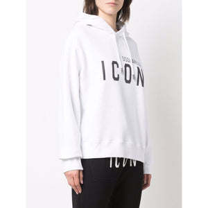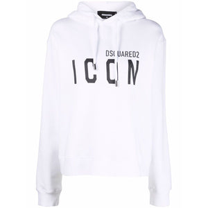 White cotton Icon-print cotton hoodie from DSQUARED2 featuring logo print to the front, signature Icon motif, drawstring hood, drop shoulder, elasticated cuffs, long sleeves and elasticated hem. Icon cotton hoodie Size and Fit - This piece fits true to size. We recommend you get your regular size. Model is 1,75m / 5ft 8in wearing size S