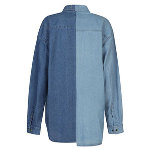 Contrast denim shirt Size and Fit - This piece fits true to size. We recommend you get your regular size. Model is 1,75m / 5ft 8in wearing size UNI