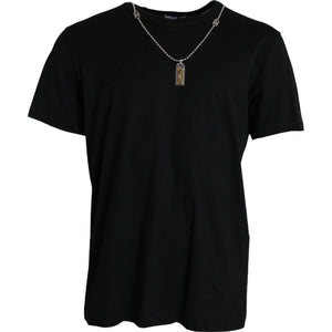 تي شيرت Dolce & Gabbana أنيق من القطن باللون الأسود مع تفاصيل علامة تعريفية